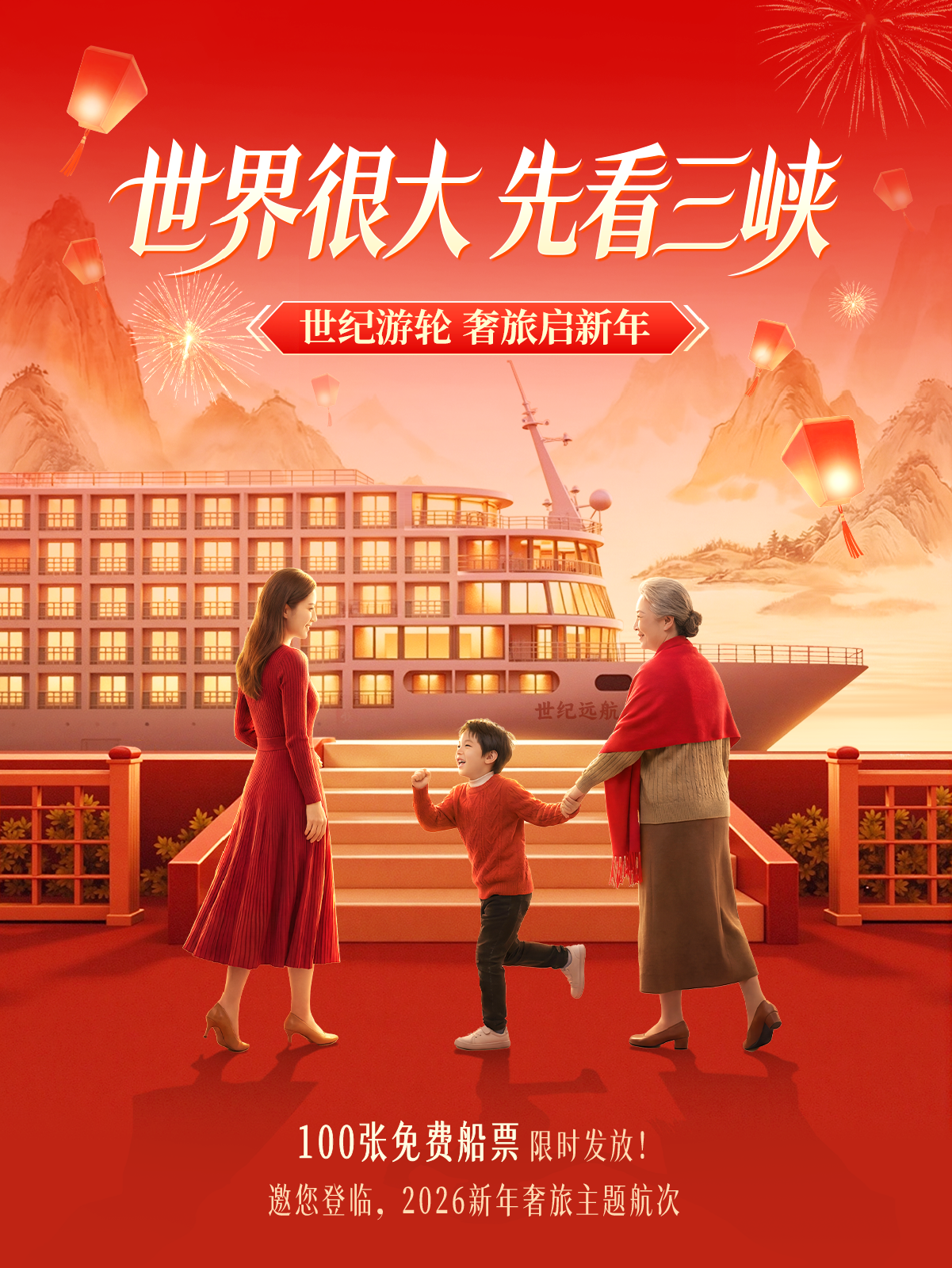 这个新年,世纪游轮想和你一起,做一件特别的事。不必匆忙远行,不用复杂攻略,登上一艘游轮,顺流而下,在万里长江的画卷里,过一个摩登中国年。