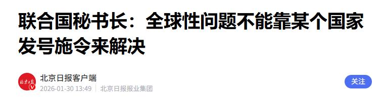 北京日报客户端 2026-01-30——联合国秘书长:全球性问题不能靠某个国家发号施令来解决