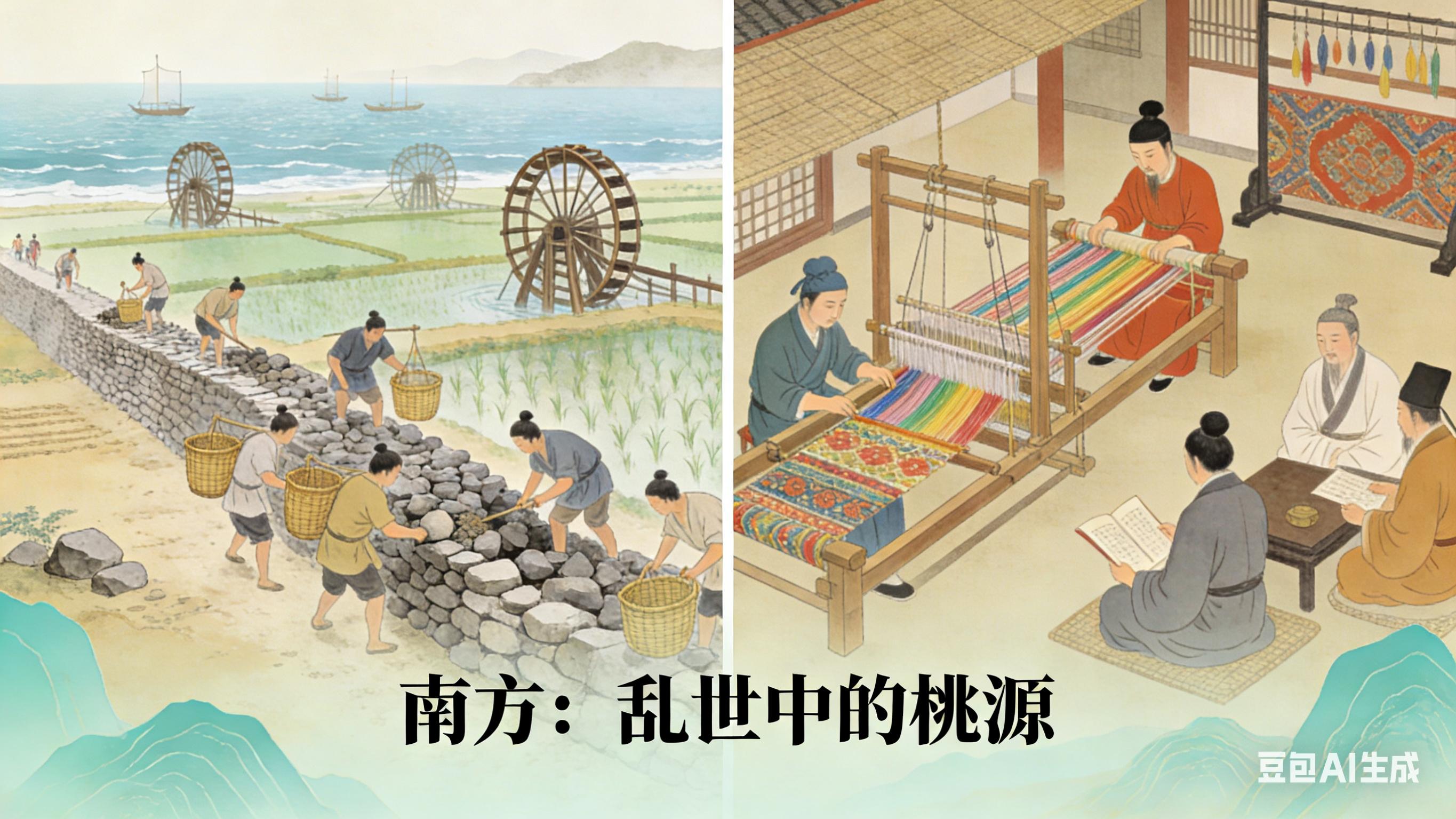 南方十国的安稳,不仅让民生得以喘息,更推动了经济重心的南移。自魏晋南北朝以来,中国经济重心逐渐南移,而五代十国时期,北方战乱不断、人口锐减,南方相对安定的环境吸引了大量北方移民,带来了先进的生产技术和劳动力,使得南方的农业、手工业、商业全面超越北方,这一格局此后再也没有逆转,深刻影响了中国历史的发展脉络。