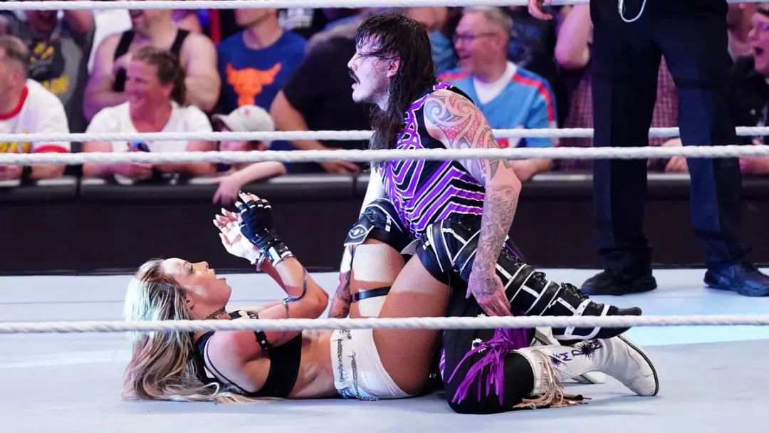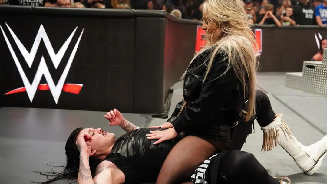 昨日RAW节目中,最后主战赛交给了多米尼克搭档丽芙·摩根迎战神秘人雷尔以及泽林娜·维嘉,由于丽芙·摩根最后通过分散裁判注意力,成功偷袭了神秘人雷尔,最终帮助多米尼克成功压制了雷尔,赢得了这场男女混合双打赛的胜利,赛后两人以示庆祝,相拥在一起,而后多米尼克发现稍有不妥,却为时晚矣。