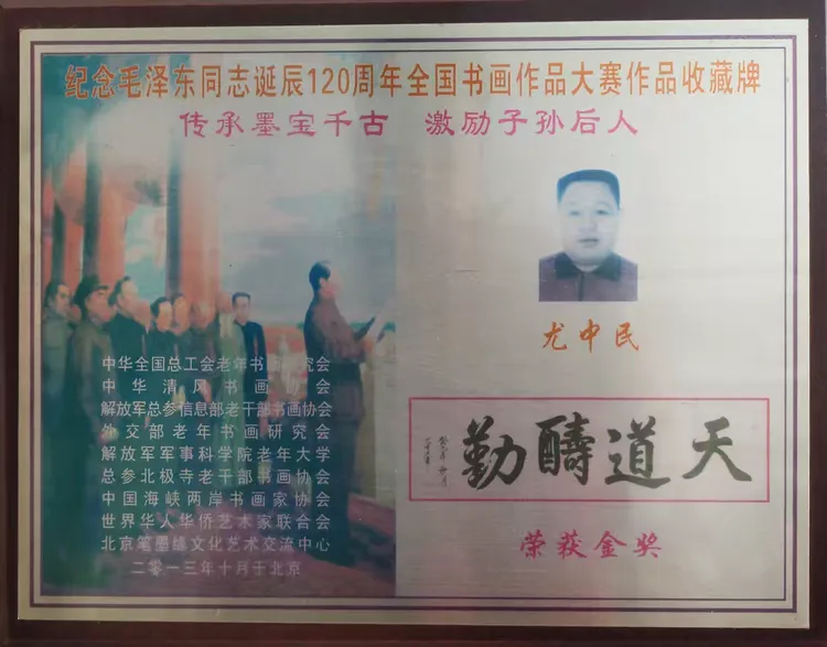 尤中民多次参加中国书法家协会办的临帖学习班,创作班一并结业。2013年10月书法作品在纪念毛泽东同志诞辰120周年全国大赛荣获金奖。2017年应邀参加“书画梦名家名作献礼全国两会”国家权威媒体联播报道。