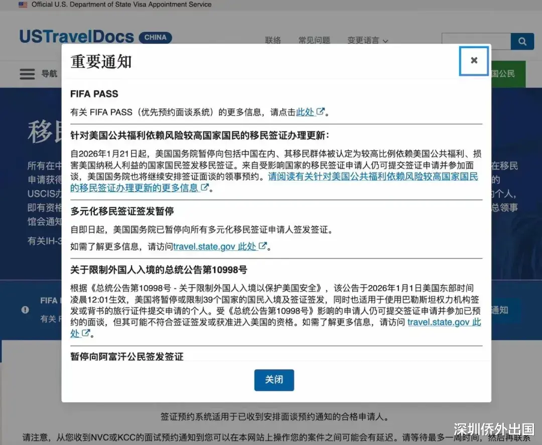 昨晚,在美签预约网站,ustraveldocs.com上,中国移民签证申请人会收到一个“重要通知”的弹窗,引起了轩然大波。