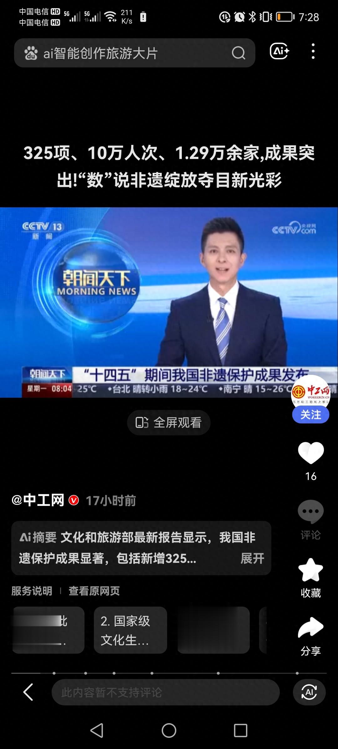 “十四五”期间,中国非遗保护取得了令人瞩目的成就:325项代表性项目、10万多名传承人、超过1.29万家非遗工坊、44项非遗项目入选联合国教科文组织名录……这些数字背后,是中华民族文化自信的不断增强,是新时代中国文化软实力的全面提升。未来,让我们携手努力,让非遗在新时代绽放出更加夺目的光彩,让中华文化的璀璨星河永不熄灭!