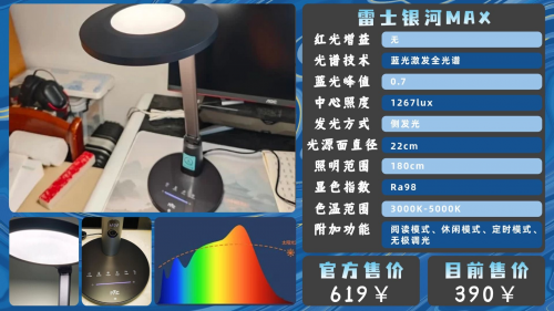 推荐理由:显色达到了Ra97,色彩还原度不错,而且多档色温能适配不同场景,日常学习够用。