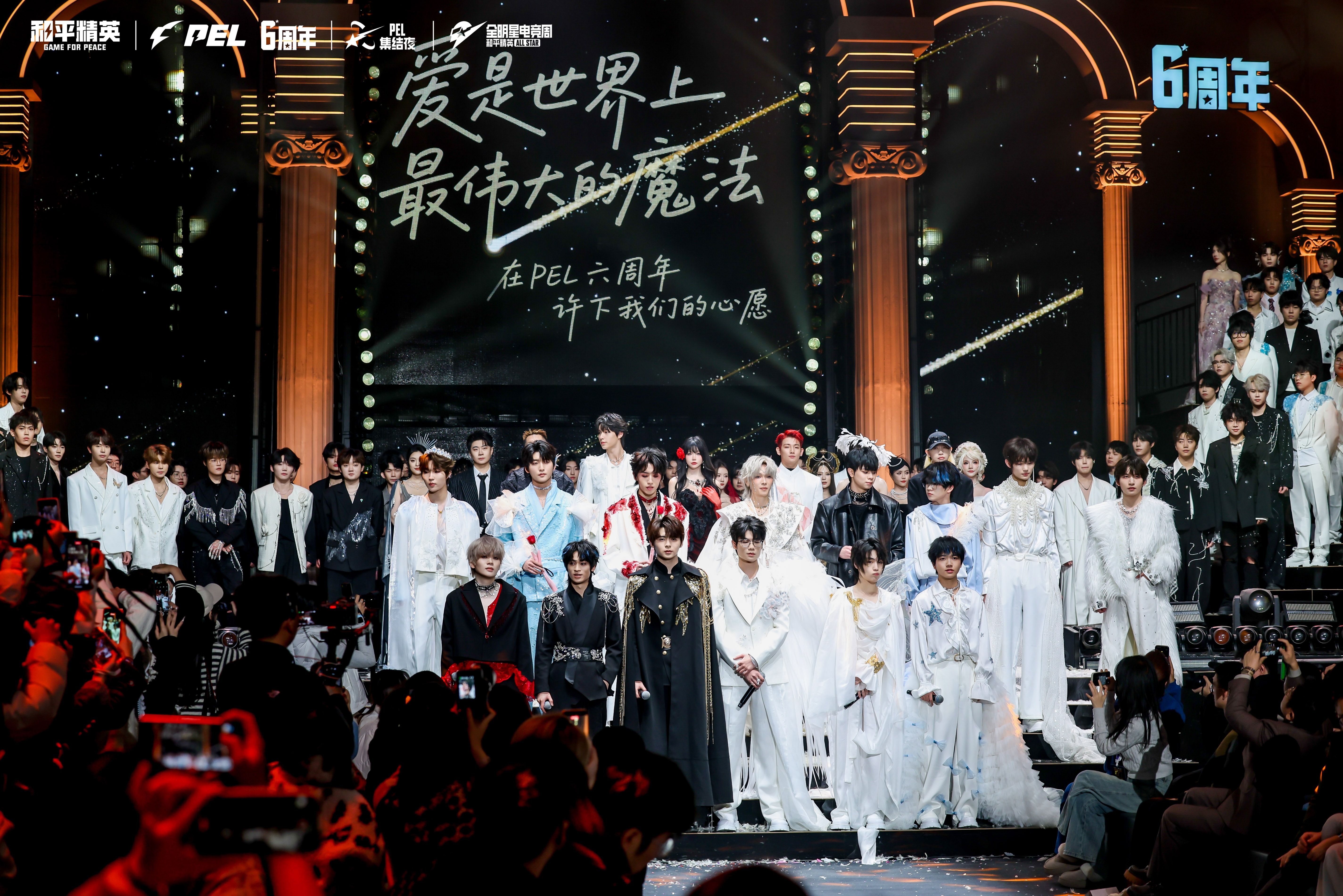 12月25日的PEL集结夜,一场全PEL联盟玩家在魔法纪元下的华丽蜕变!中国游泳名将孙杨作为特邀嘉宾惊喜空降,与职业选手、Casper、李佳隆、奥玛等明星大咖们共同穿上限定华丽礼服,踏上光影交织的奇幻红毯,携手开启了一场震撼十足的剧情式走秀,引发全场欢呼。最后,伴随着北京JDG.Paraboy、湖南TEC.33Svan、上海RW.诚C和北京WBG.Suk合唱的《精英不凡》,选手们进行返场走秀,并许下PEL六周年心愿与祝福。