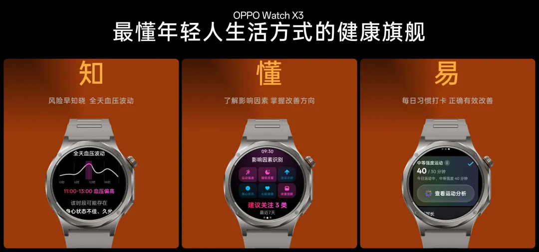 所以,现在OPPO Watch X3在健康赛道的全面进阶,绝非单一功能的常规升级,而是基于多年自研技术沉淀、顶级临床机构合作与海量用户真实数据积累,打造的一套从精准监测、风险发现、成因分析到方案改善的全周期健康管理闭环,真正为安卓智能表领域,筑起了一道难以复刻的技术护城河。