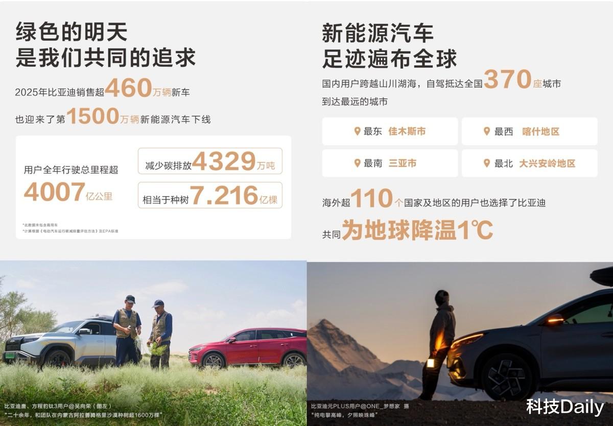 2025年比亚迪销售超470万辆新车,新朋友的到来共同构建了比亚迪的朋友圈,每一段旅程、每一种生活中都有比亚迪相伴,随时出发拥有稳稳地幸福。