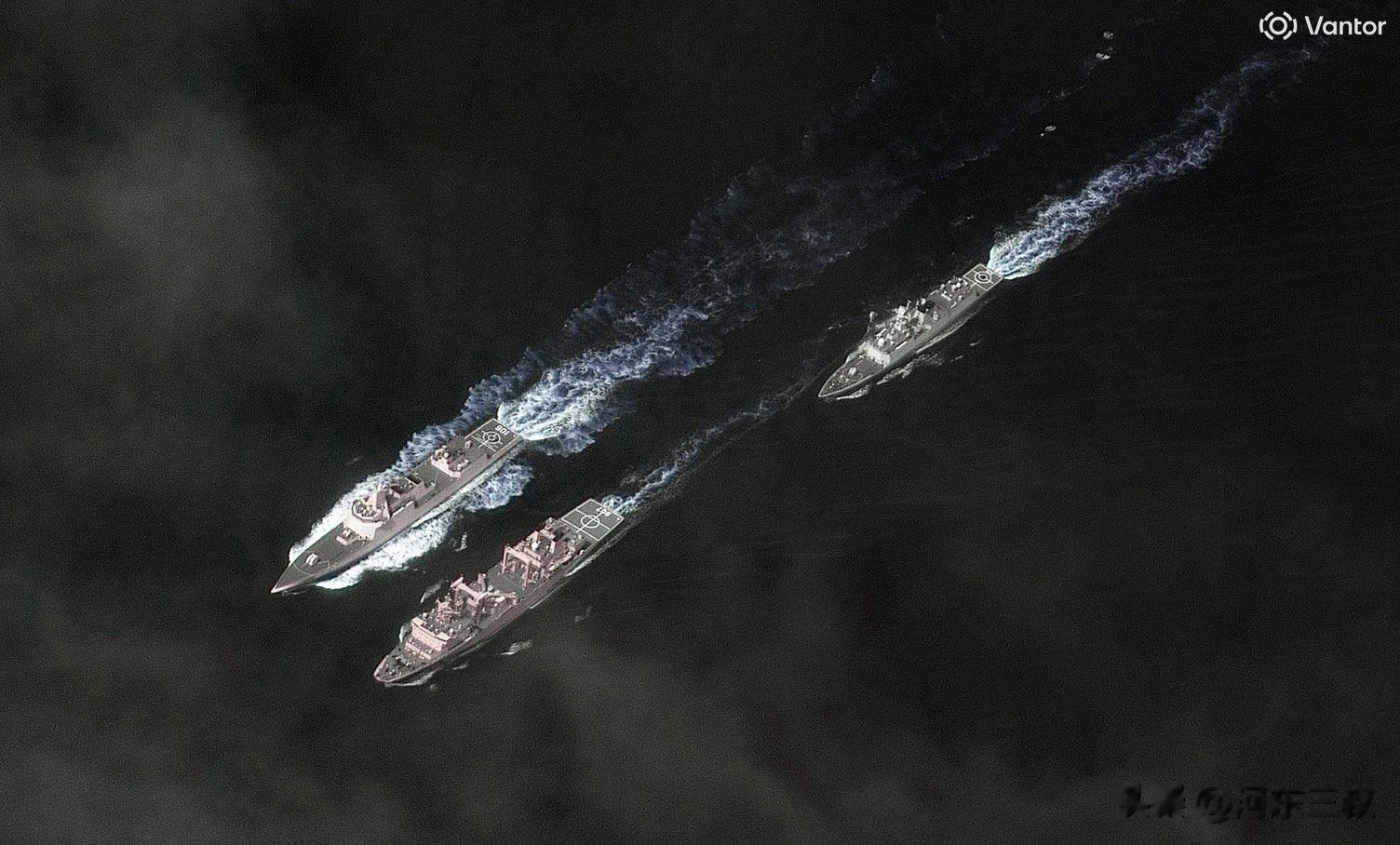 美国Vantor公司突然发布高分辨率卫星照片,画面显示中国海军075海南舰编队在菲律宾以东海域,紧锣密鼓展开实战化训练。包括海上补给,以及舰载机升空训练等,清晰度之高连直升机型号都能分辨。