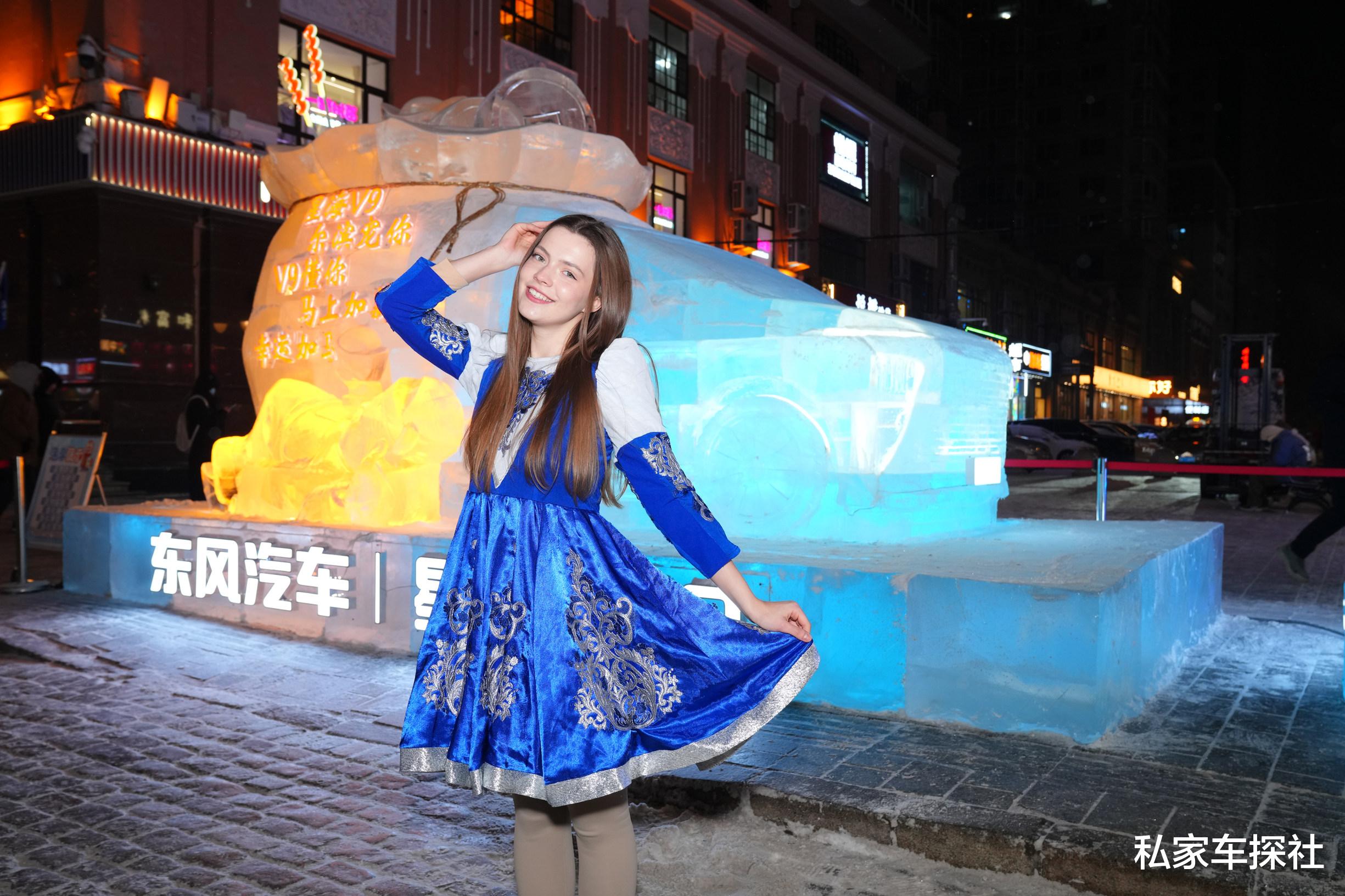 灯火与寒气交织的中央大街,一组凝结着冰雪灵气的星海V9冰雕,便以其剔透之美悄然惊艳了所有步履匆匆的路人。剔透的冰晶在灯光下流转着温润的光晕,将星海V9勾勒成一座梦幻的“移动雕塑”。