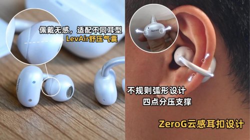 佩戴体验堪称行业标杆,创新的ZeroG云感耳扣与LevAir零压气囊强强联合,搭配四点分压支撑结构,再加上单耳仅4.8g的超轻机身,真正实现“零压悬浮”佩戴感,长时间佩戴毫无压迫感,即便运动出汗也能牢牢贴合耳部,不位移、不脱落。耳夹连接桥采用航空钛合金与高分子记忆材料打造,韧性出众,经上万次弯折测试后仍能保持原有形态,耐用性直接拉满。