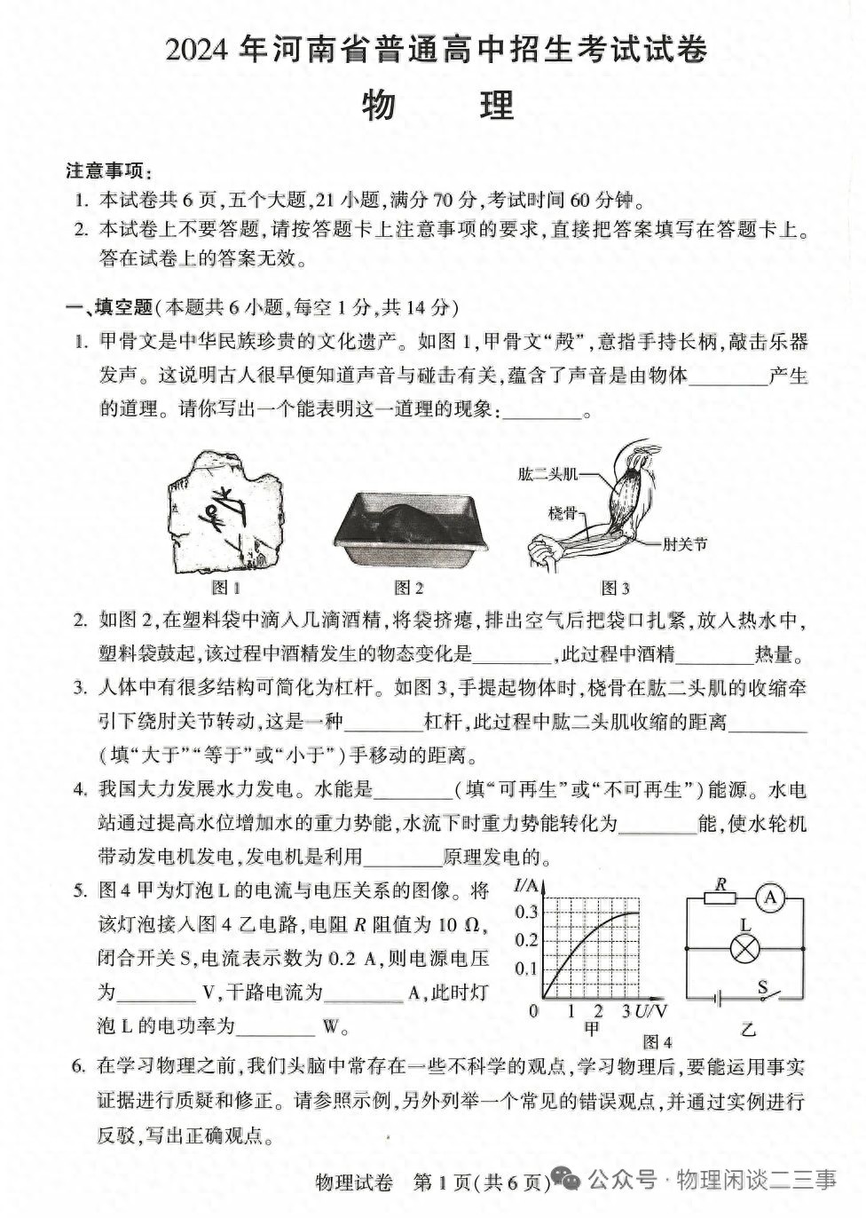 2024年河南省普通高中招生考试试卷及答案