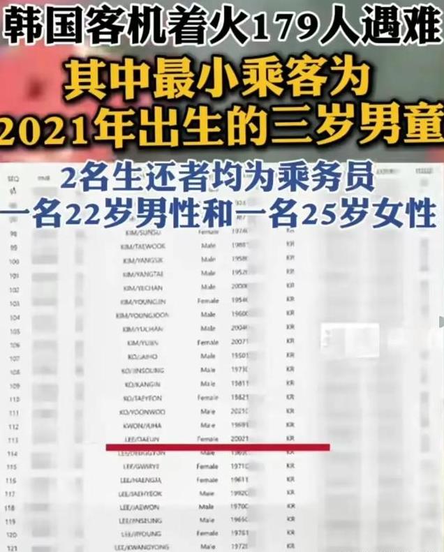 韩国空难者有新婚夫妇和三岁男童,留言曝光,生者讲述细节大康恩次方