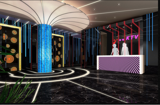 一、KTV装修设计想法近年来因为游戏赛博朋克2077的出现,让不少年轻一代的人在审美方面发现了新大陆。最初的一些:中式改良风、英伦时尚风、个性简约风等等已经造成了不少人审美疲劳。这次KTV装修万豪世家开始做了一次大胆的尝试、将近年来赛博朋克风格的标签融入到KTV里边打造出一个充满科技、时尚、的星美影院KTV,从而满足新一代消费群体的口味。