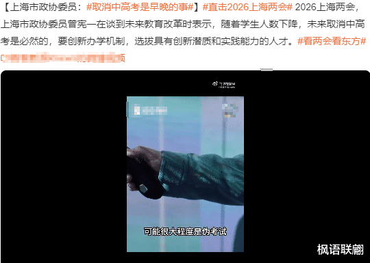 近日,在2026年上海两会上,有专家提出"取消中高考是早晚的事";