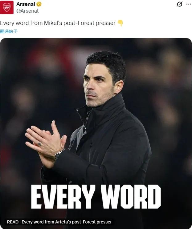 阿尔特塔出席了赛后新闻发布会,我们来看看阿森纳主帅的发言。