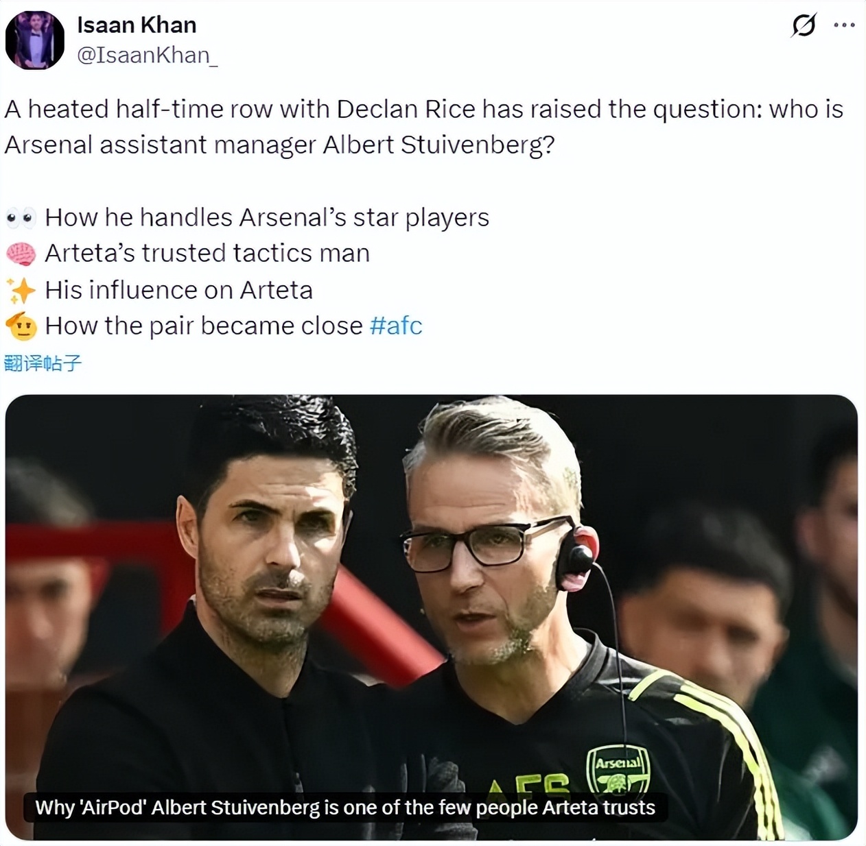 最近赖斯在中场休息时和斯图文博格发生了争吵,邮报记者IK借此机会谈到了这名阿森纳的助教。