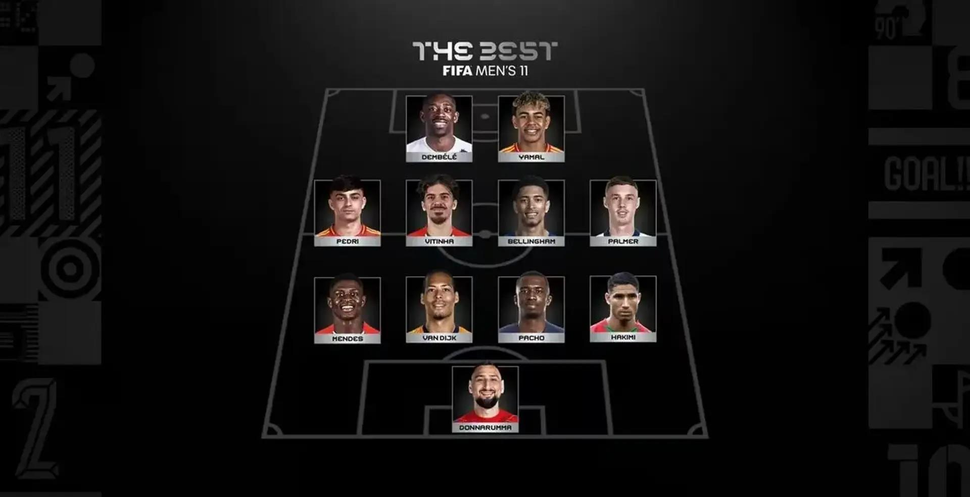 12月16日周二,国际足联公布了2025年度最佳男足阵容。