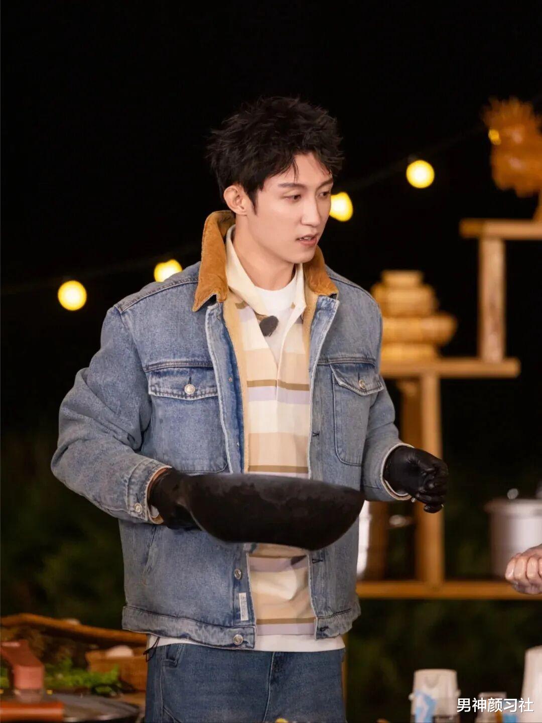 如果想更显高级感,可以在牛仔夹克内叠穿高领针织衫,颜色低饱和度,立刻从学生党变身韩系男主。