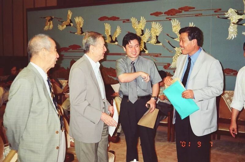 照片16.刘东生(左1)叶笃正(左2)院士与两位赞助企业家在一起