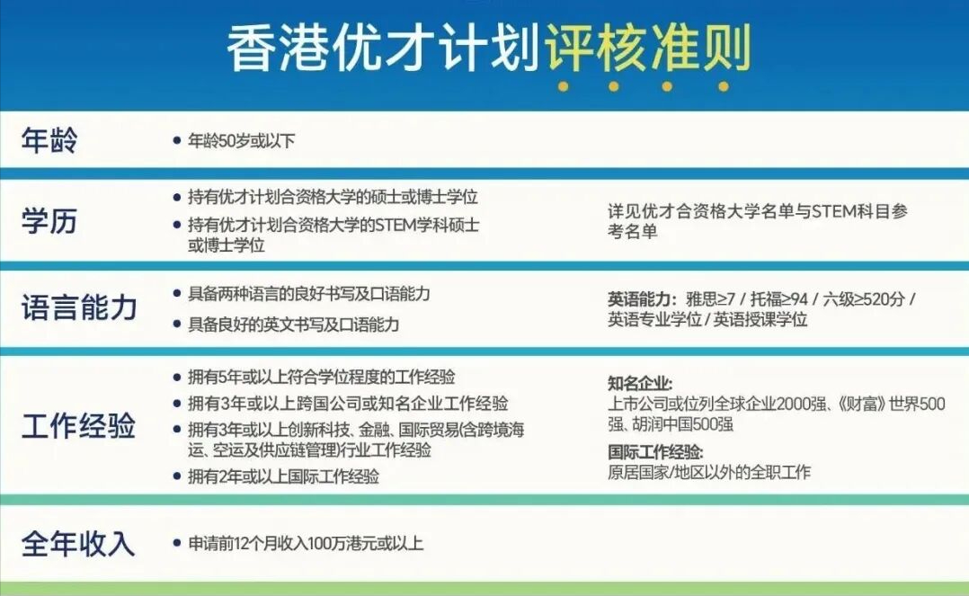 目前港府的人才引进政策仍处于相对宽松的阶段,但后续收紧是大趋势。如果您符合优才/高才/专才/留学进修其中一项,那就可以现在好好规划一下,抓住港府政策风口