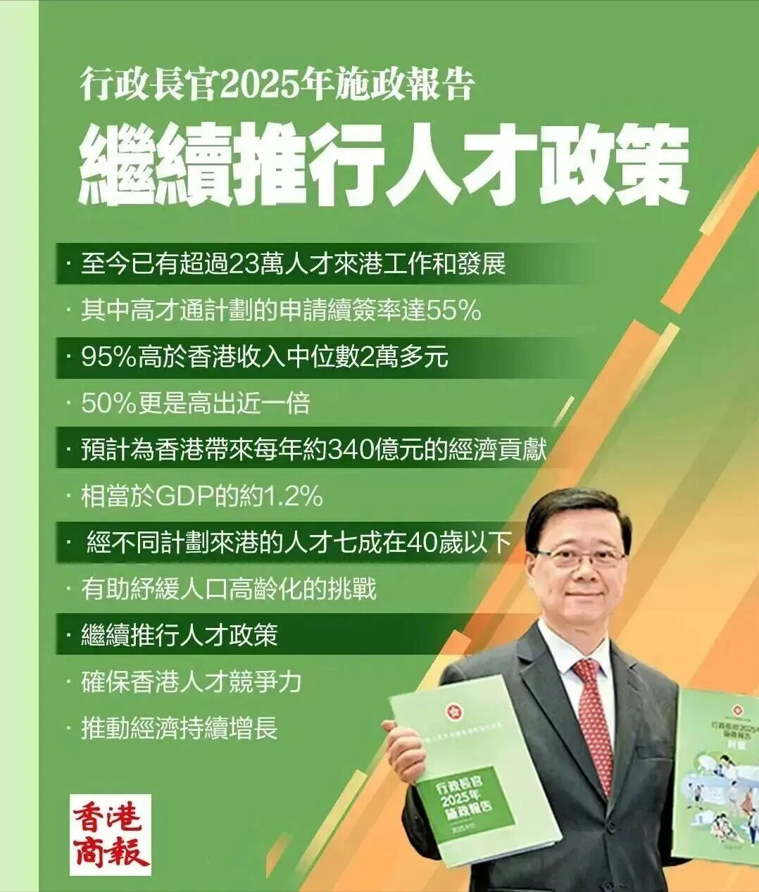 2025年9月17日,香港行政长官李家超发表其任期内第四份《施政报告》。这次《施政报告》的发布比往年提前了一个月,表现出了港府对一系列人才政策调整的深远考量。进一步明确了人才政策的导向,从追求数量的“广纳人才”转向注重质量的“精准筛选”。