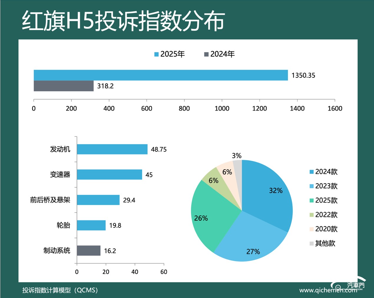 汽车质量投诉点评:2025年,红旗H5的投诉指数为1350.35,同比上升324.37%。数据显示:红旗H5的车机卡顿不升级问题的投诉指数高达662.5,占比近五成。2023款至2025款车型均出现了该问题。大量红旗H5车主投诉称,车辆的车机系统不仅长期未更新,还经常卡顿、黑屏、死机,严重影响驾驶安全。部分红旗车主前往4S店要求解决问题,4S店却声称这是正常情况,不予处理。