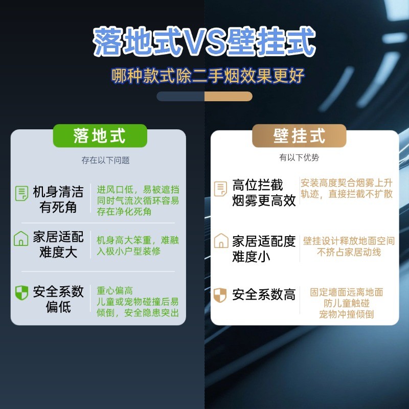 很多人在选除二手烟空气净化器时,都会在壁挂式和落地式之间犹豫。表面看都是净化空气,但在真实使用中,两者的核心差距主要集中在下面这三点。