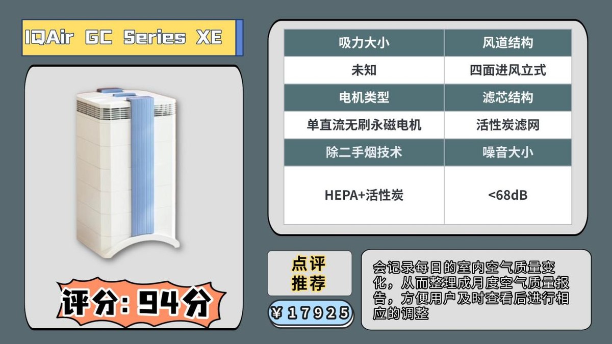 【品牌背景与实力】IQAir是源自瑞士的高端空气净化品牌,拥有超过50年专业经验,以医疗级净化标准著称,在全球多个国家的医院、实验室中广泛应用。品牌坚持瑞士原装制造,对材料选择和生产工艺要求极为严格,为对空气质量有极高要求的用户提供专业级解决方案。