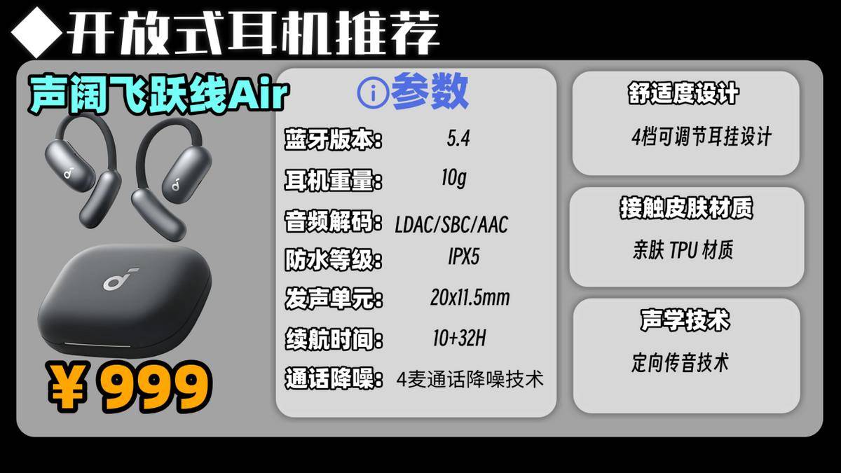 推荐理由:千元内性能天花板,真正闭眼入的开放式耳机优选!