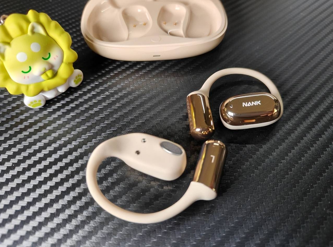 单耳重量约13.8克,在开放式耳机里算是偏重一些的。 佩戴感受方面,采用了三点一弧面的支撑结构,耳挂内部是镍钛合金记忆金属,可以自由调节角度适应不同耳型。不过耳挂尺寸偏大,对耳廓特别小的用户可能不太友好,长时间佩戴后耳廓上方会有轻微压迫感。 音质表现是这款耳机的最大亮点。搭载了高精度叠层喇叭,低频量感十足,中频人声饱满,高频细节也不错。整体听感就像耳朵上挂了两个小音箱,360度环绕立体声效果很出色。