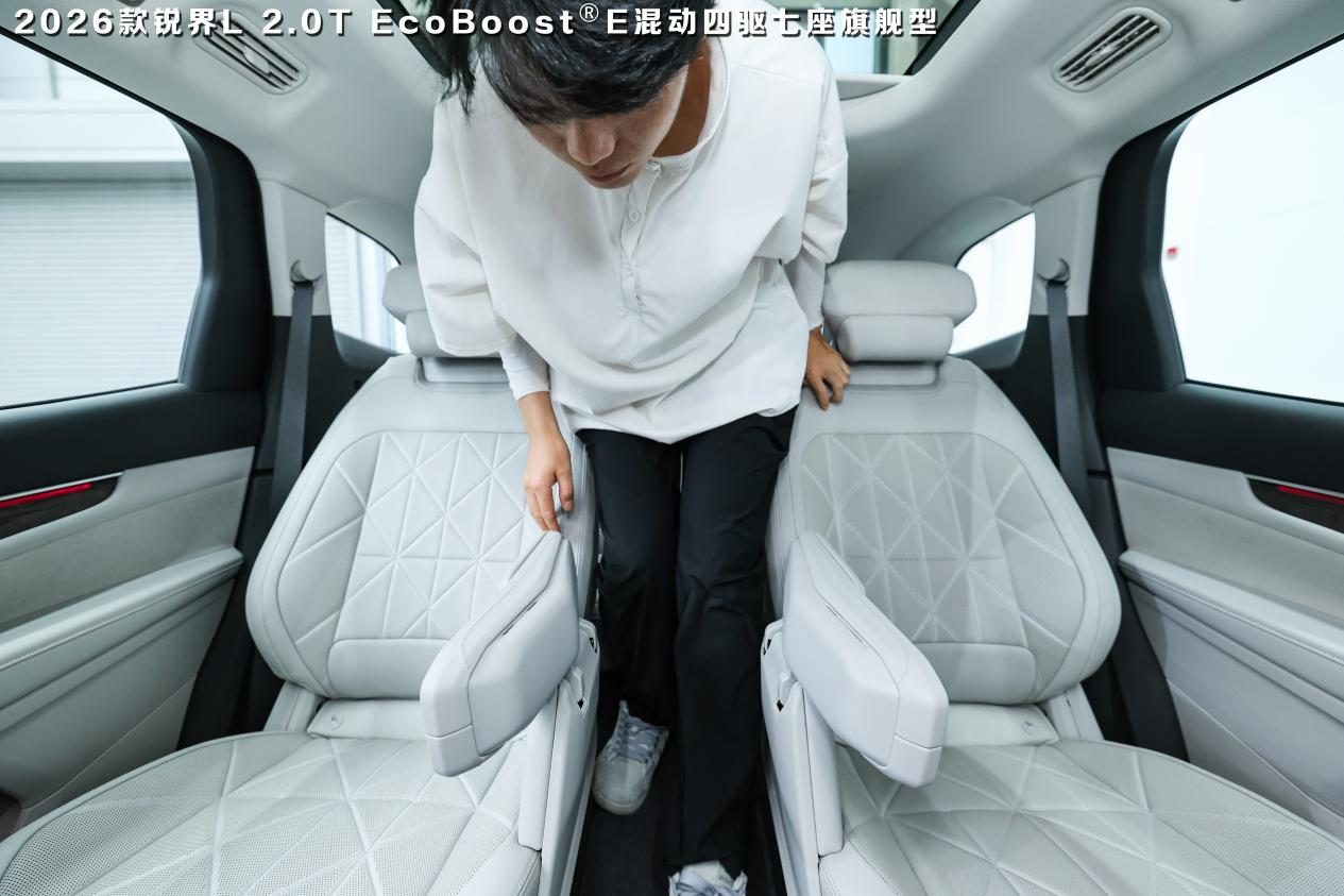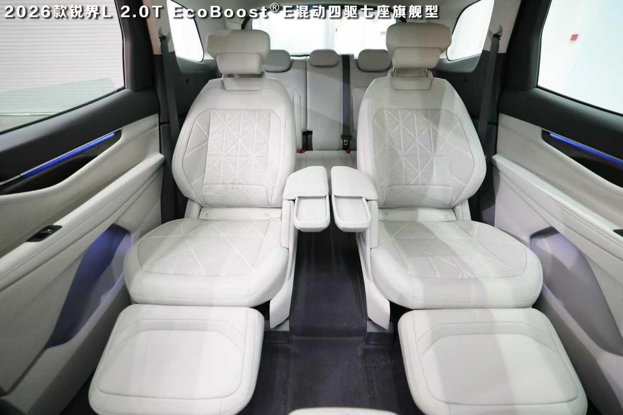 而且,2026款福特锐界L的二排座椅很舒适,靠背的包裹度和扶手位置设计的都很符合人体工程学,而且支持一键零重力模式,所以长途旅行也能很放松。