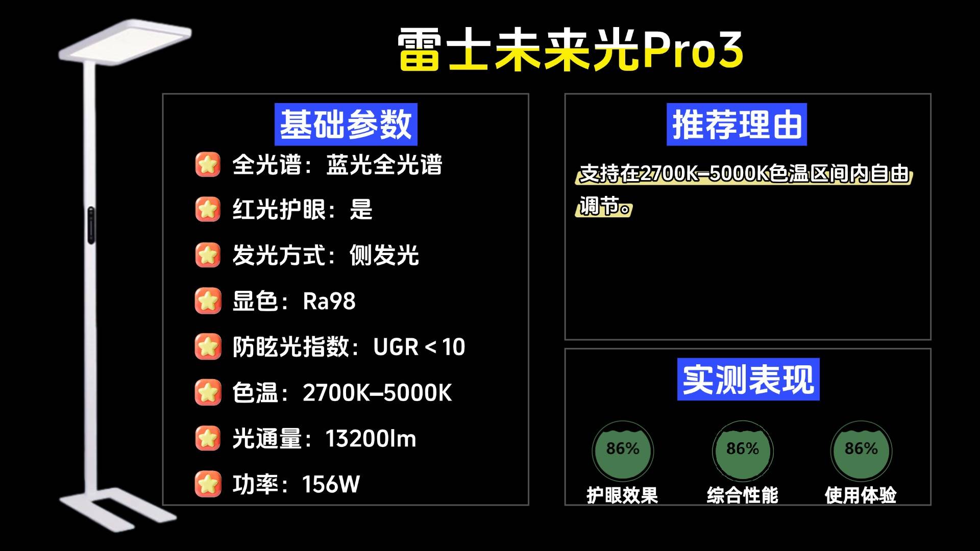 护眼大路灯第九名:雷士未来光Pro3;支持在2700K–5000K色温区间内自由调节。