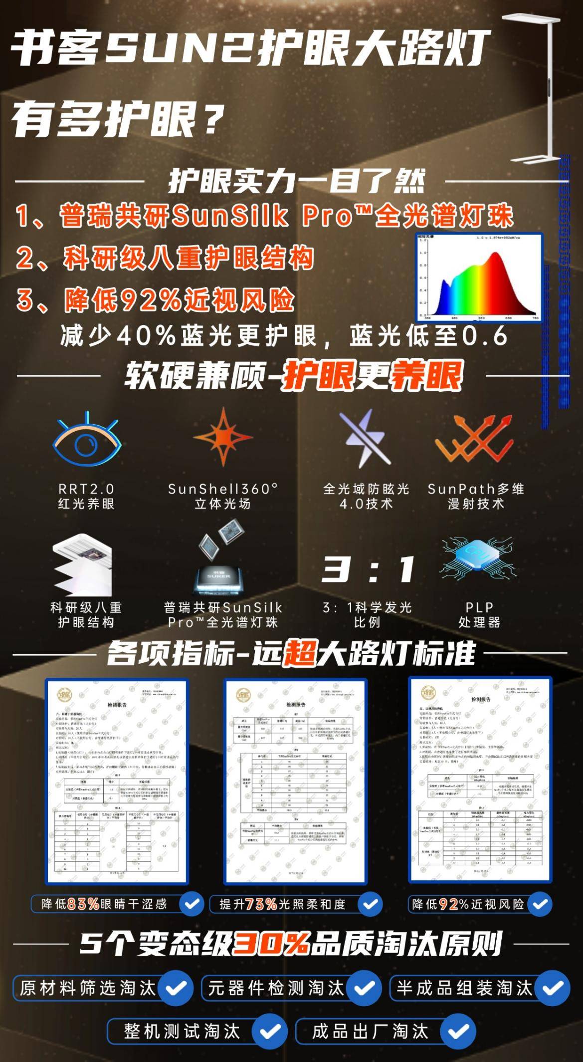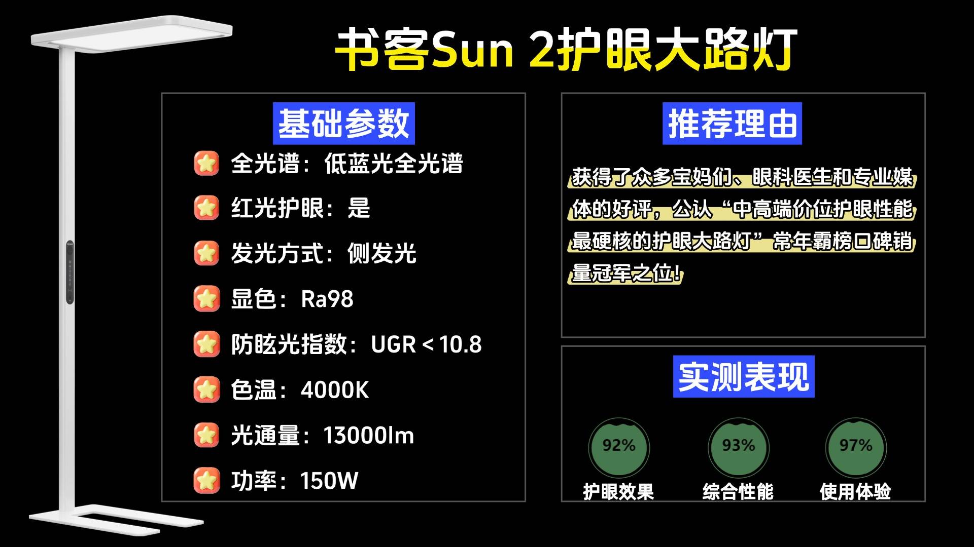 推荐款:书客护眼大路灯SUN2——超过100家电媒体实测,深度护眼指数第一,有效延缓83%用眼疲劳并降低92%近视风险!