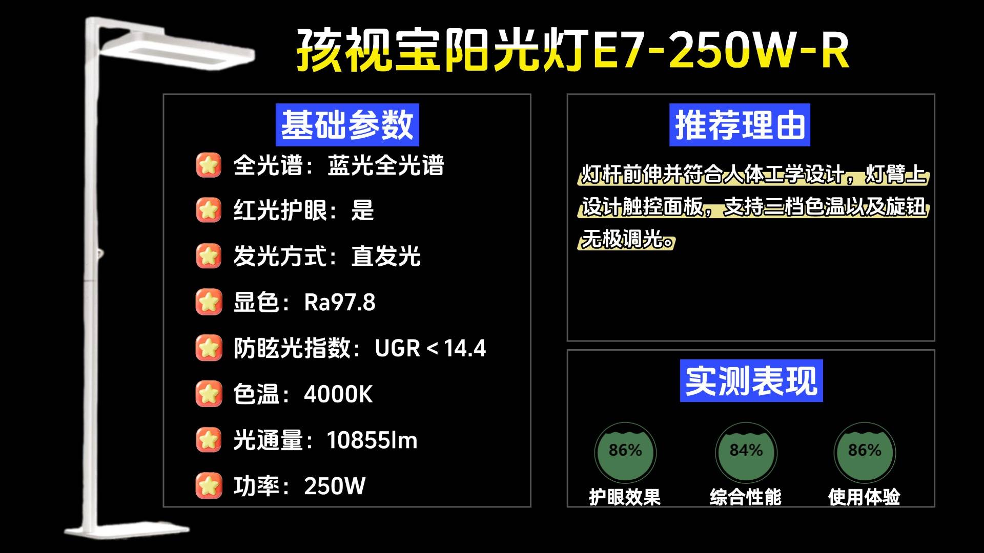 护眼大路灯第八名:孩视宝E7-250W-R;支持上下发光面单双开的护眼大路灯,适用于不同场景。