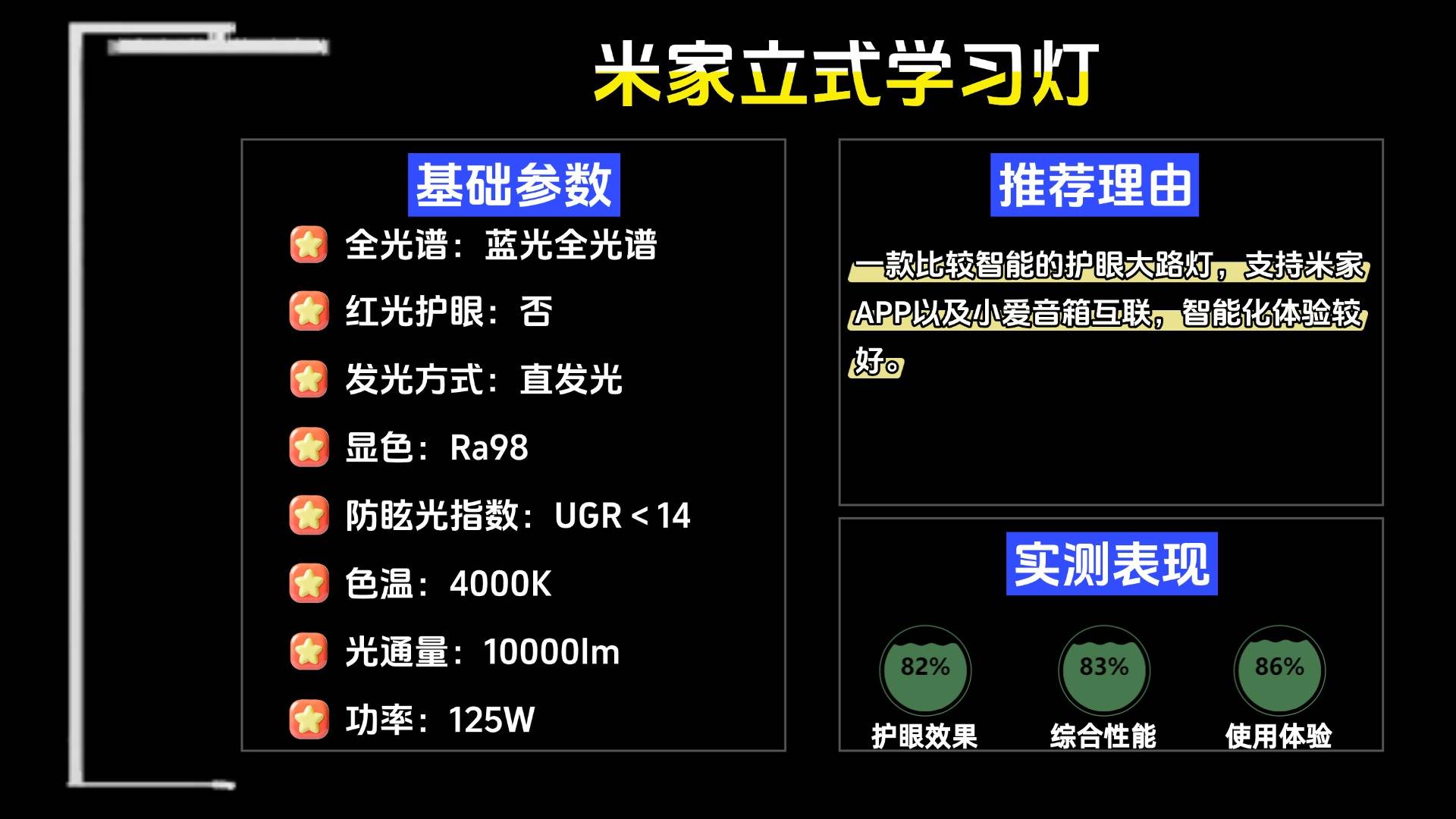 推荐款:米家立式学习灯——具备10000lm的光通量,整体的光线明亮。