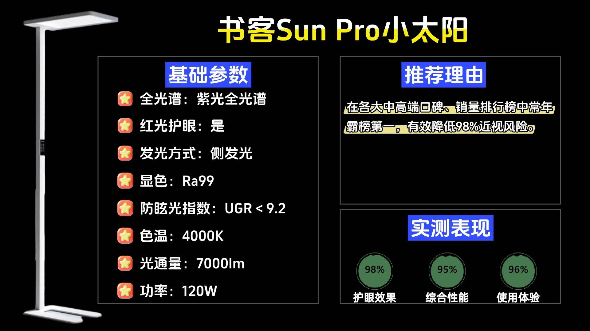 推荐款:书客护眼大路灯Sun Pro小太阳——在各大中高端口碑、销量排行榜中常年霸榜第一,有效降低98%近视风险。