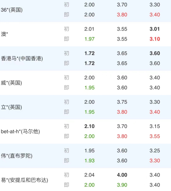 欧指威*初赔2.00/3.60/3.40,客胜呈低压可博状态,主胜并无形成缓冲拉力,很难形成过热局面,盘面稍微左倾,变赔整体结构比较稳定。