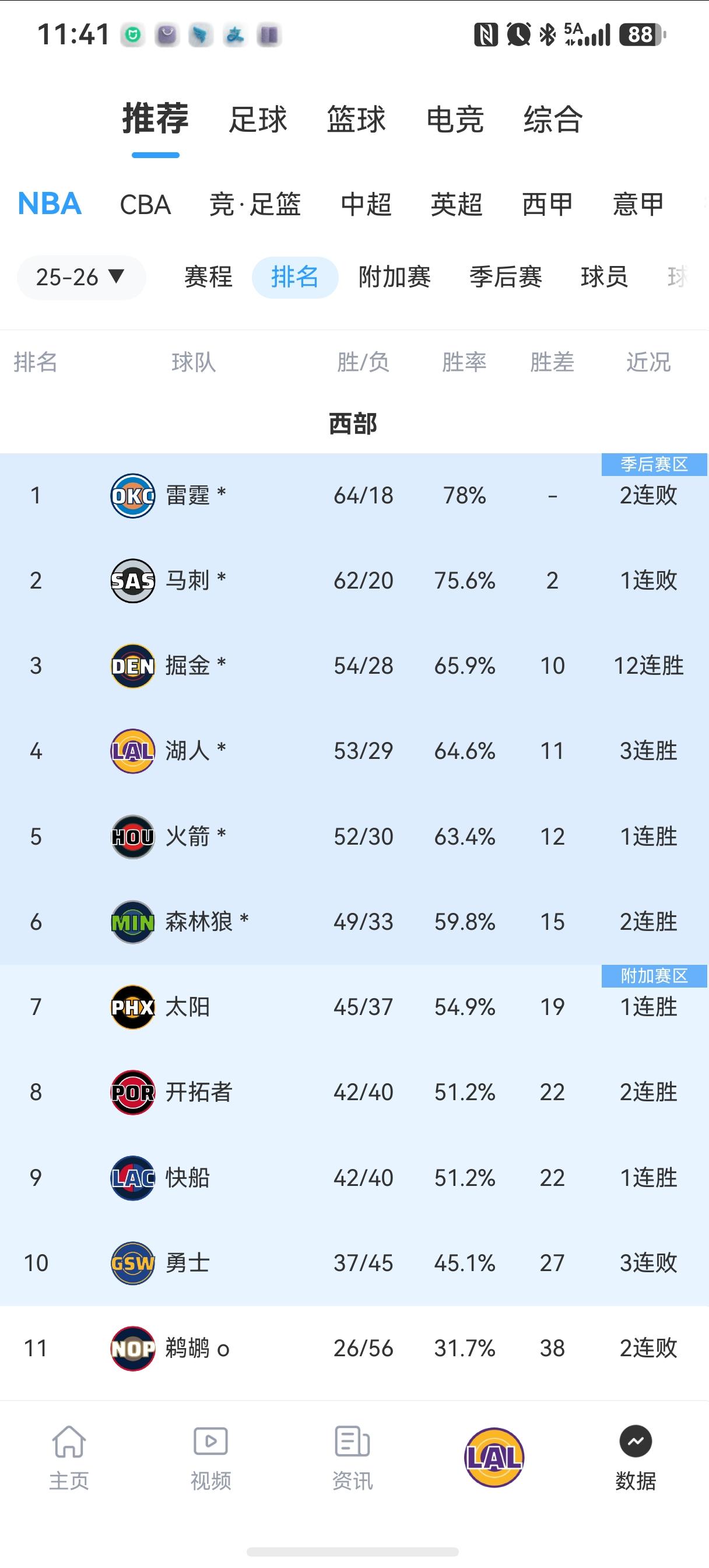 随着这几场比赛结束,NBA西部收官战最新排名如下: