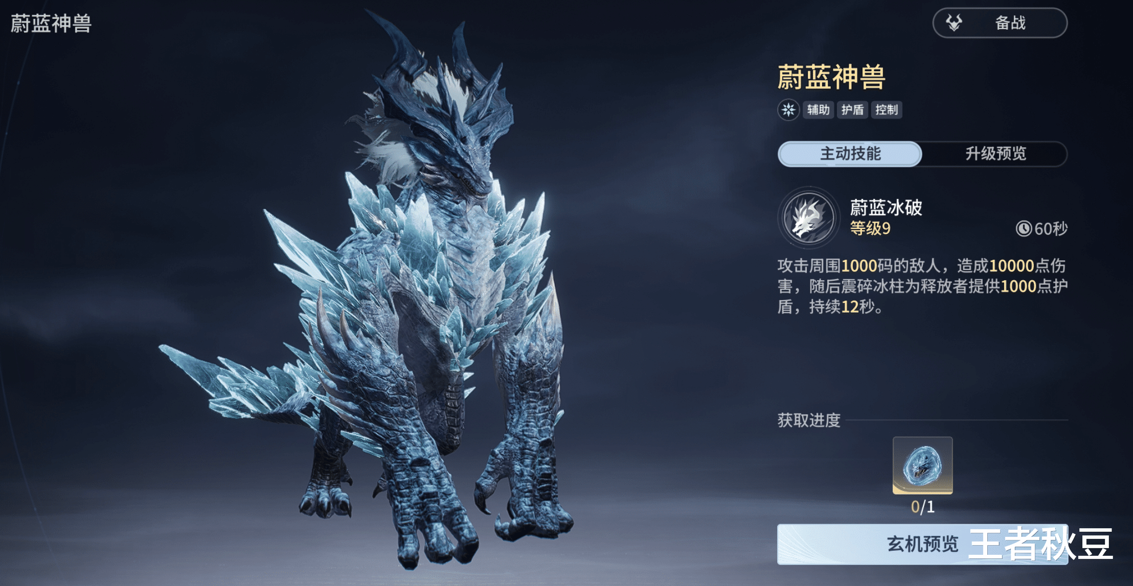 蔚蓝神兽属于辅助型幻灵,可以提供护盾和冻结目标,提升队伍的辅助能力。另外还能提升治愈强度和冷却缩减,整体下来觉得如果要选适配英雄的话,可以选择王昭君搭配。但是蔚蓝神兽出场时间较后,材料获取比较慢,更建议带猩红神兽。