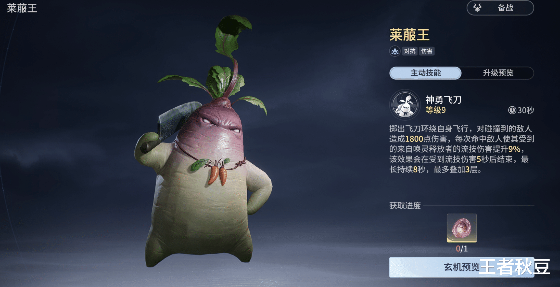 对抗型英雄的幻灵,可以搭配花木兰使用。莱菔王可以为英雄短时间提供一刀流增伤效果,为英雄的下一次攻击最高提升50%的流技伤害,适合花木兰的重剑爆发。另外莱菔王的嘲讽也非常契合木兰的反击。