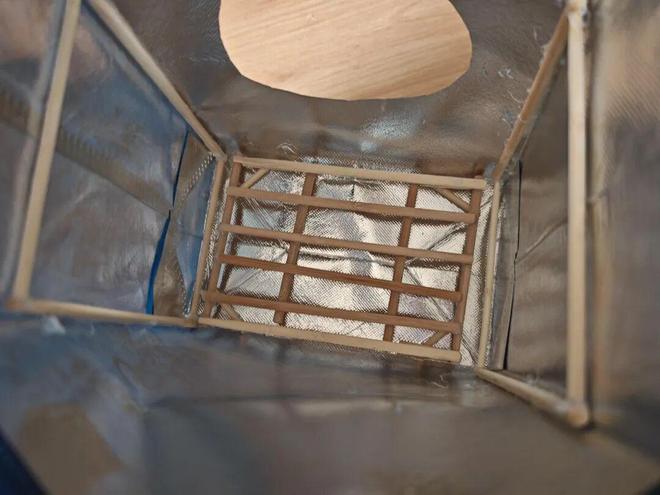于是,奶茶袋就派上大用场了,只需要在侧面剪个口,上面折个小雨篷,再放食盆放进去,就不用担心被雨打湿了。