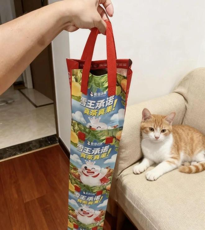 做好之后,可以先让自家的猫主子试一下大小,只要带防水层的奶茶袋都可以做。