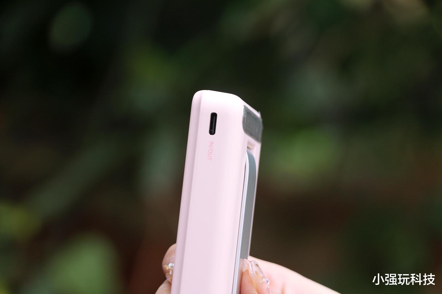 侧边一侧带有Type-C输出输入口,可提供最高20瓦有线输出充电以及18瓦有线输入充电,能够让手机充电更快,并且还能够给充电宝充电也能更快。