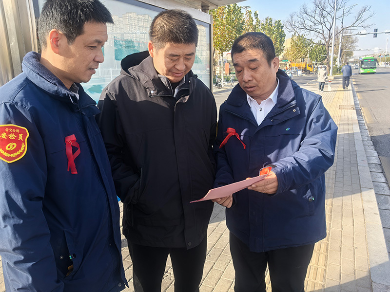 12月1日,石家庄市交投集团所属公交集团九路车队组织志愿者走上公交站台,深入周边社区,积极开展“红丝带”世界艾滋病日主题宣传活动。