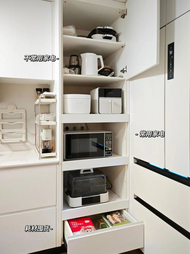 可实际上,真正需要收纳的,其实是那些不起眼小家电。比如空气炸锅、电饼铛、微波炉......