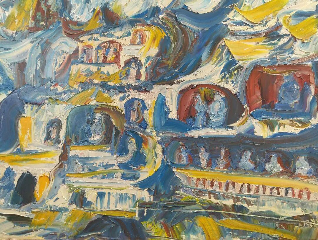 油彩的厚重遇上水墨的飘逸,西方的写实撞进东方的写意,百年的空白被东方的色彩填满,未完成的遗憾成了跨时空的圆满。画布上,红绸翻涌如东方的云霞,蓝纹流转似江南的春水,大师未竟的笔触,终在东方的丹青里,寻到了最妥帖的归处。