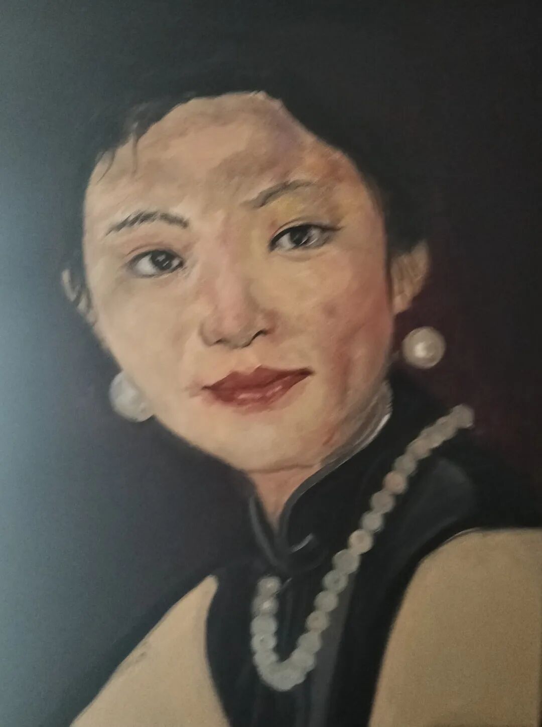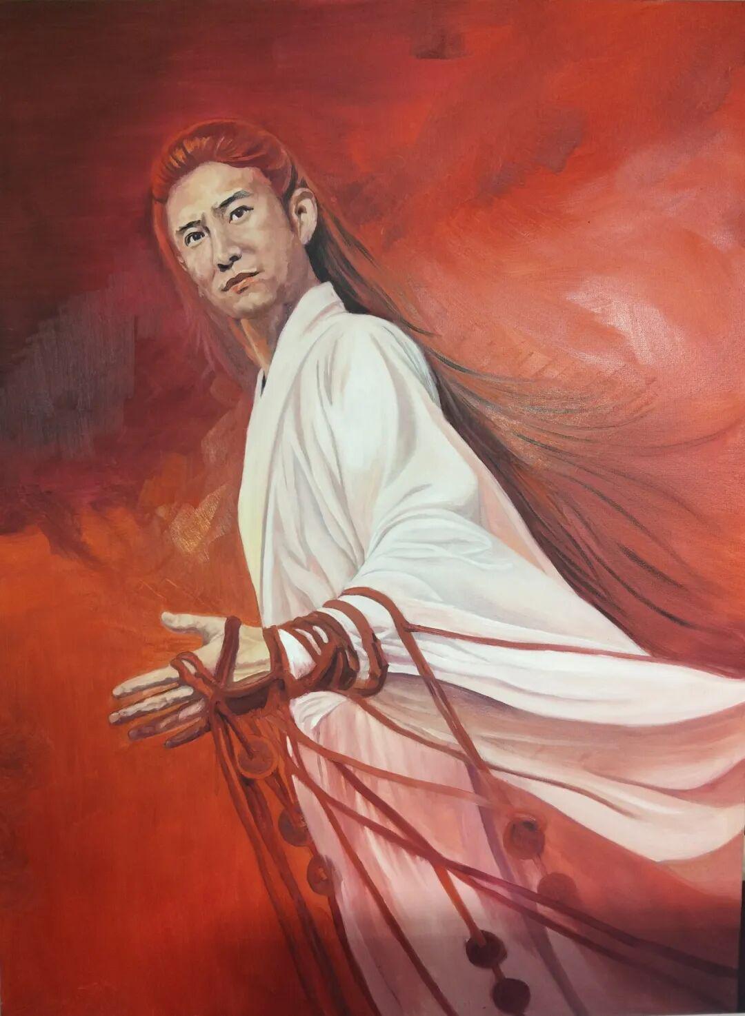 直到东方的画笔携着水墨的灵韵而来。执笔的中国画家站在画前,指尖抚过画布上皴裂的油彩,像与百年前的灵魂隔空相握。他取东方的霞色,为衣袂晕开浓烈的红;蘸江南的蓝,为褶皱勾出清浅的纹;揉进墨色的沉,衬出背影的孤绝。