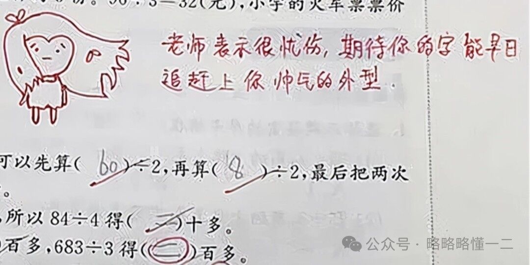 00后老师在语言表达上也很有艺术,觉得同学们字写的很小,于是留言一句:“老师年纪大啦,要依靠放大镜啦!”学生一下就能听懂老师是什么意思,下次就改正了。