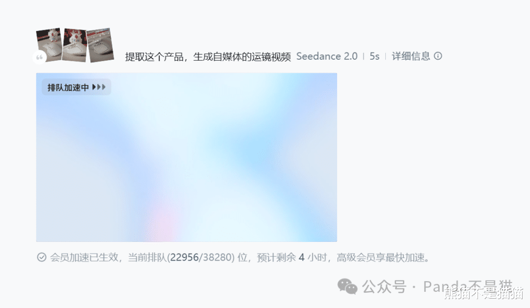 不得不说这个生成时间是真的离谱,这还是开通了会员的情况下,不开会员这个时间基本在15小时左右,甚至更长。不清楚是真的有这么多人用,还是说官方可以控制算力,然后阴兵借道。