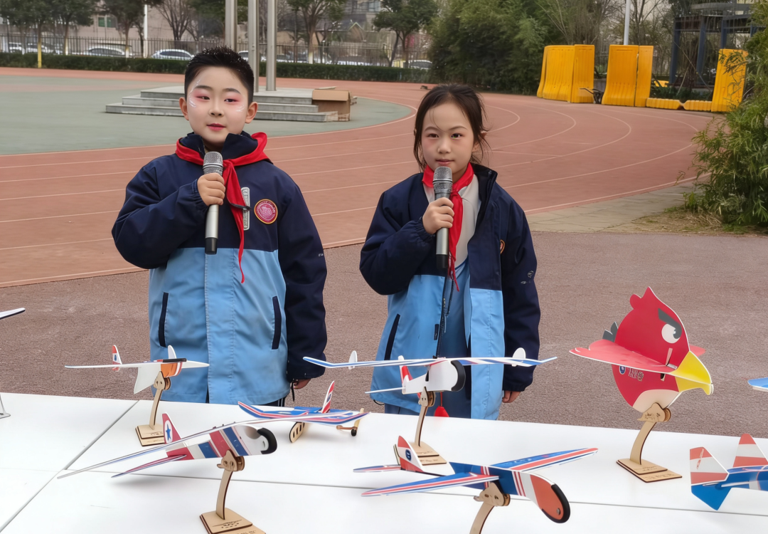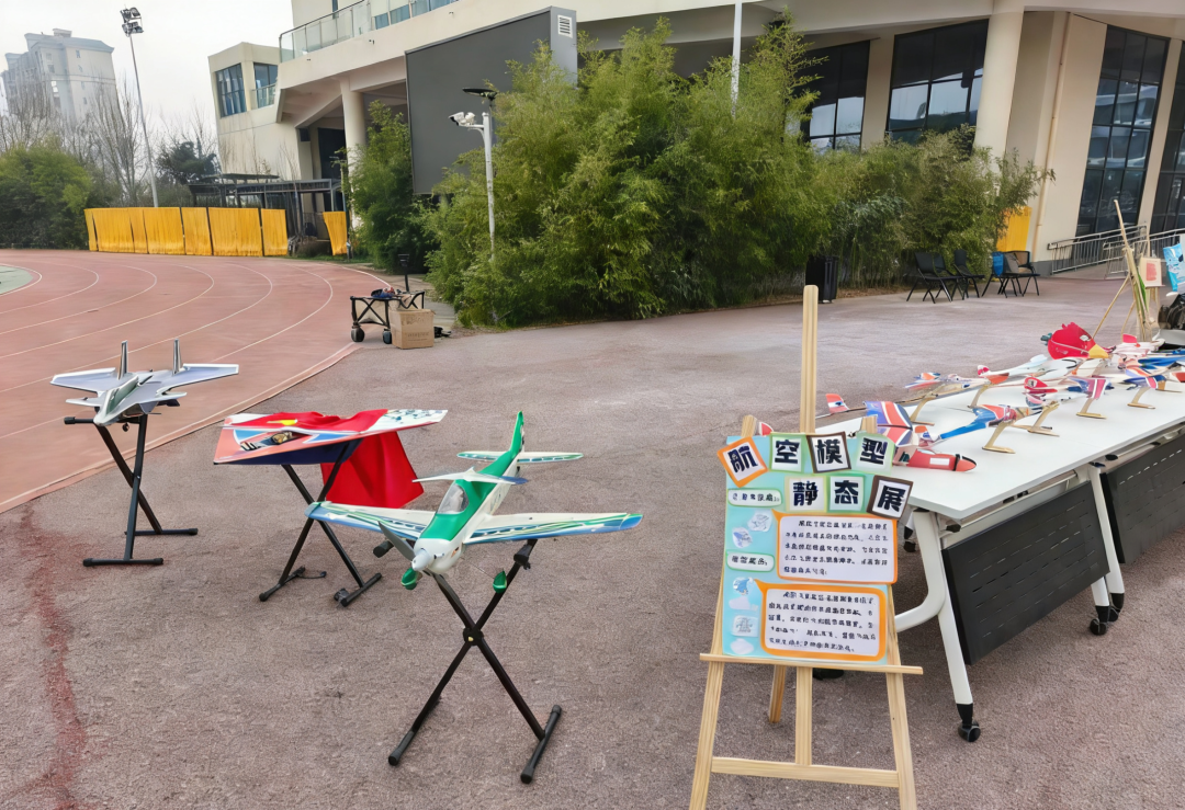 在动态展区,“航空模型”社团的孩子们现场演示了白鹭号手掷滑翔机、猛虎号橡筋飞机和蓝鹊电动飞机等多种机型,将科技的力量与自然的灵动完美融合,在蓝天之上书写着属于自己的壮丽篇章。